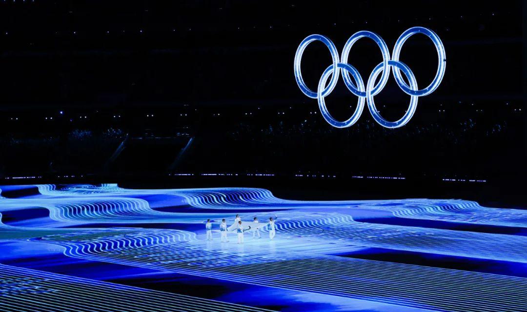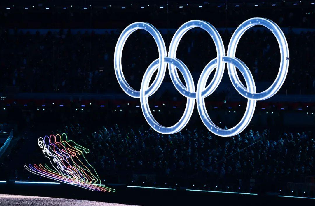 2月4日晚,第二十四届冬季奥林匹克运动会开幕式在北京国家体育场举行。这是开幕式上的“冰雪五环”环节。新华社记者 陈益宸 摄