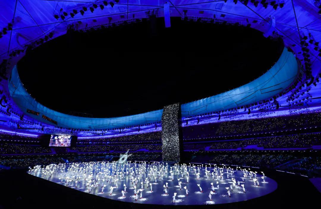 2月4日晚,第二十四届冬季奥林匹克运动会开幕式在北京国家体育场举行。这是开幕式上的“构建一朵雪花”环节。新华社记者 陈益宸 摄