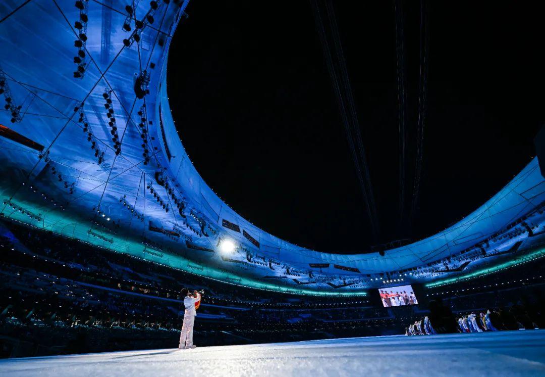 2月4日晚,第二十四届冬季奥林匹克运动会开幕式在北京国家体育场举行。这是一名小号手吹响《我和我的祖国》的旋律。 新华社记者 鞠焕宗 摄