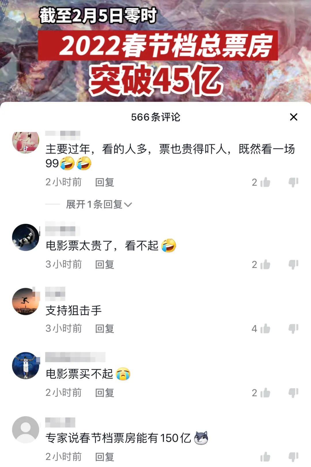高票价正在成为春节档的新标签。“电影票太贵了”话题一度冲上微博热搜,引发众多网友讨论。以《长津湖之水门桥》为例,其在北京一家影院大年初一的IMAX版本单张票价高达179元。
