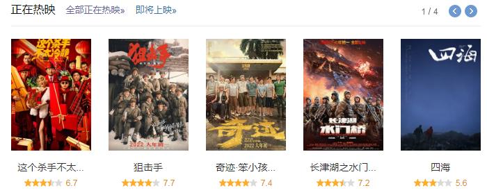此外,今年春节档八部电影时长,《长津湖之水门桥》为149分钟、《四海》128分钟、《奇迹·笨小孩》106分钟、《这个杀手不太冷静》109分钟、《熊出没·重返地球》99分钟、《狙击手》96分钟、《喜羊羊与灰太狼之筐出未来》94分钟、《小虎墩大英雄》90分钟。