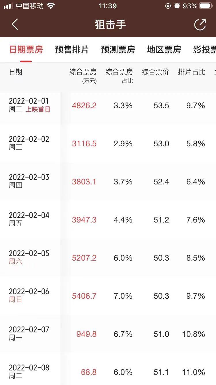 《狙击手》的排片占比也从2月2日的5.8%上升至了2月6日的9.7%,数据显示后面几天的排片占比还将超过10%。