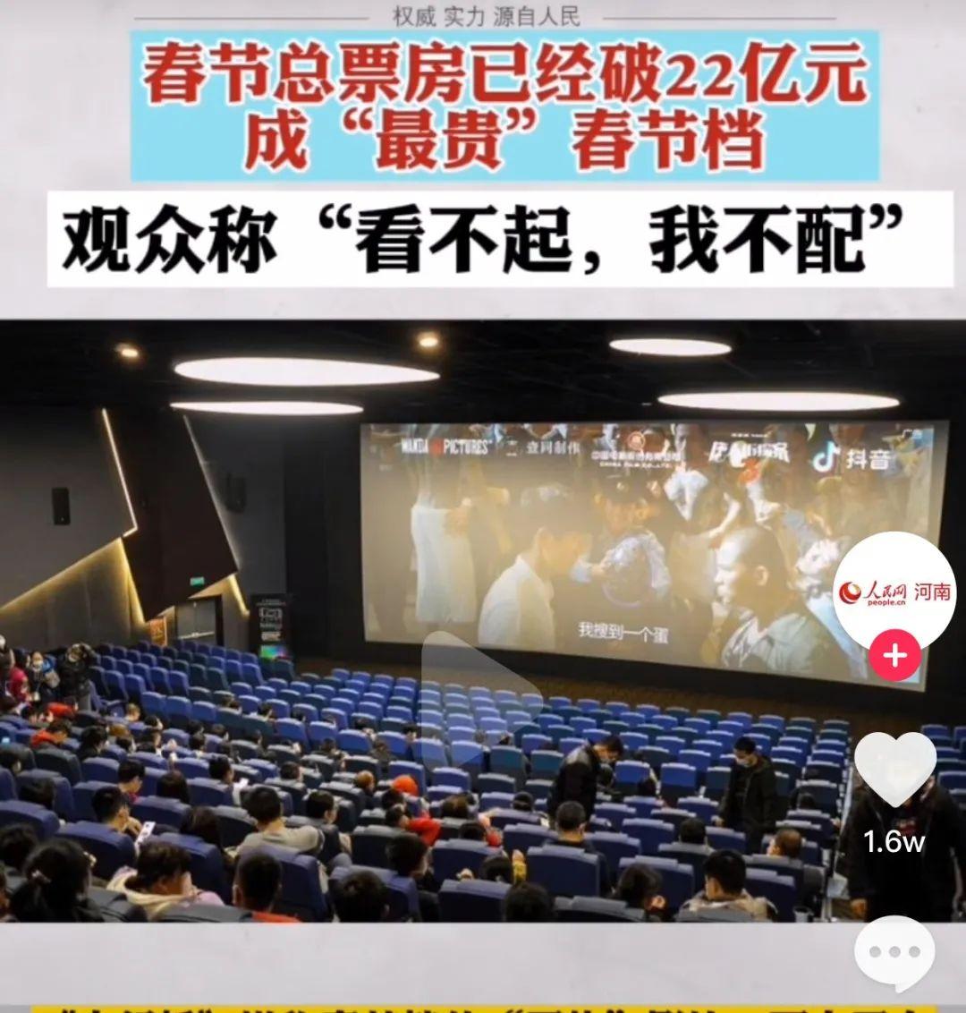 研报分析,回落的观影人数背后有几方面原因。一是去年的高基数。二是高昂的票价,春节档票价同比上涨近20%。三是南方湿冷的天气阻碍了部分消费者外出消费的步伐。