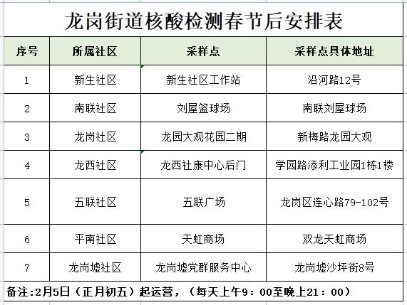 扩散!2月5日起,龙岗街道设置7个核酸检测点!