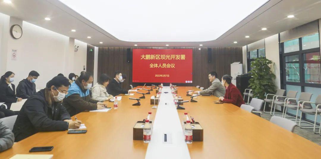 2月7日上午,大鹏新区坝光开发署署长许斌在片区服务中心209会议室主持召开2022年春节后复工复产动员部署会议,坝光开发署全体工作人员参加会议。