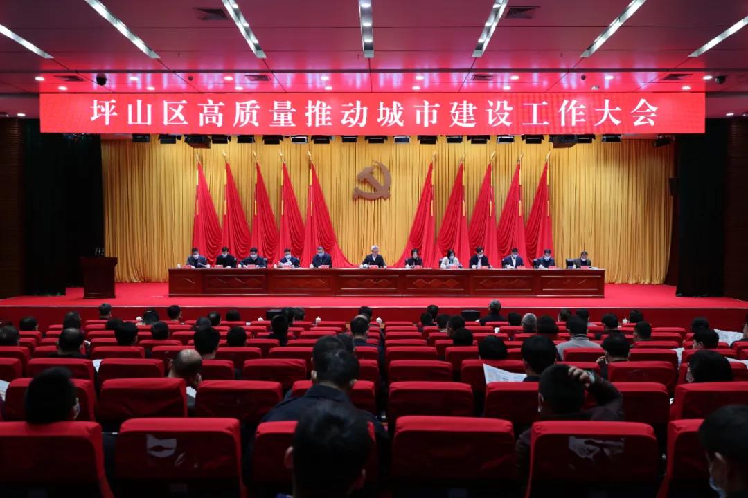 读特客户端·深圳新闻网2022年2月7日讯 2月7日,农历新年第一个工作日,坪山区召开高质量推动城市建设工作大会。会议认真学习贯彻习近平总书记关于城市工作的重要讲话精神,全面贯彻落实党中央、国务院《关于进一步加强城市规划建设管理工作的若干意见》,中办、国办《关于在城乡建设中加强历史文化保护传承的意见》《关于科学绿化的指导意见》等系列文件精神,按照省市部署安排,坚定不移拓展产业空间、提升城区功能品质,努力把坪山建成具有深圳气派、湾区风范的未来之城样板地。区委书记杨军出席会议并讲话,区委副书记、区长赵嘉主持会议,区人大常委会主任廖澍华,区政协主席管连秀,区委副书记、政法委书记张宗武出席会议。