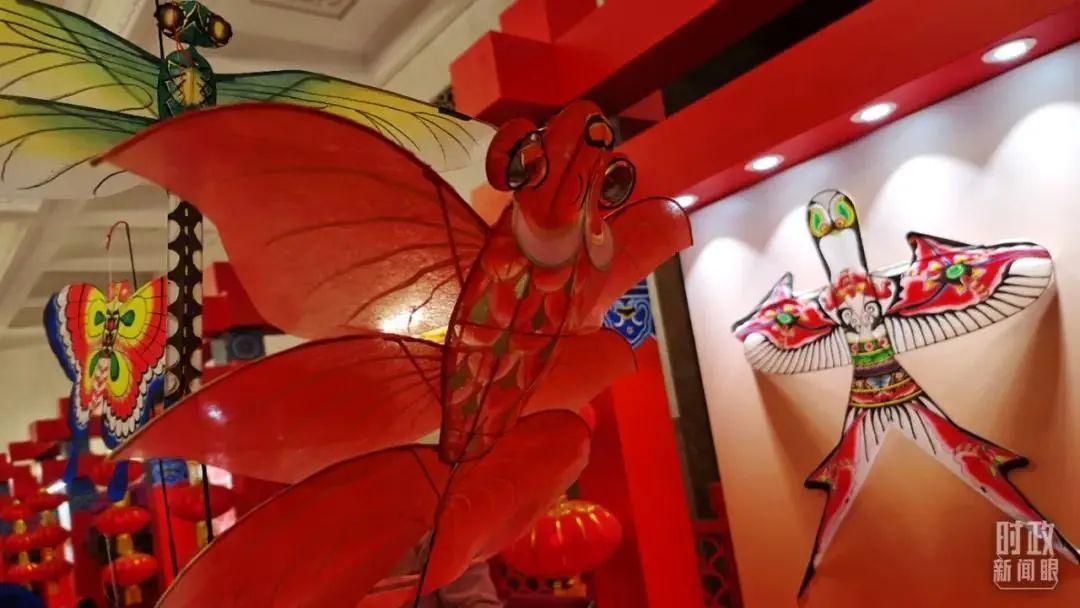 年画、春联、剪纸、风筝、面塑、中国结、京剧脸谱、民乐合奏……这些从中国土地上长出来的非遗作品,匠心独运、光彩照人,让短短数十米的廊道化身为精华版的中国“庙会”。