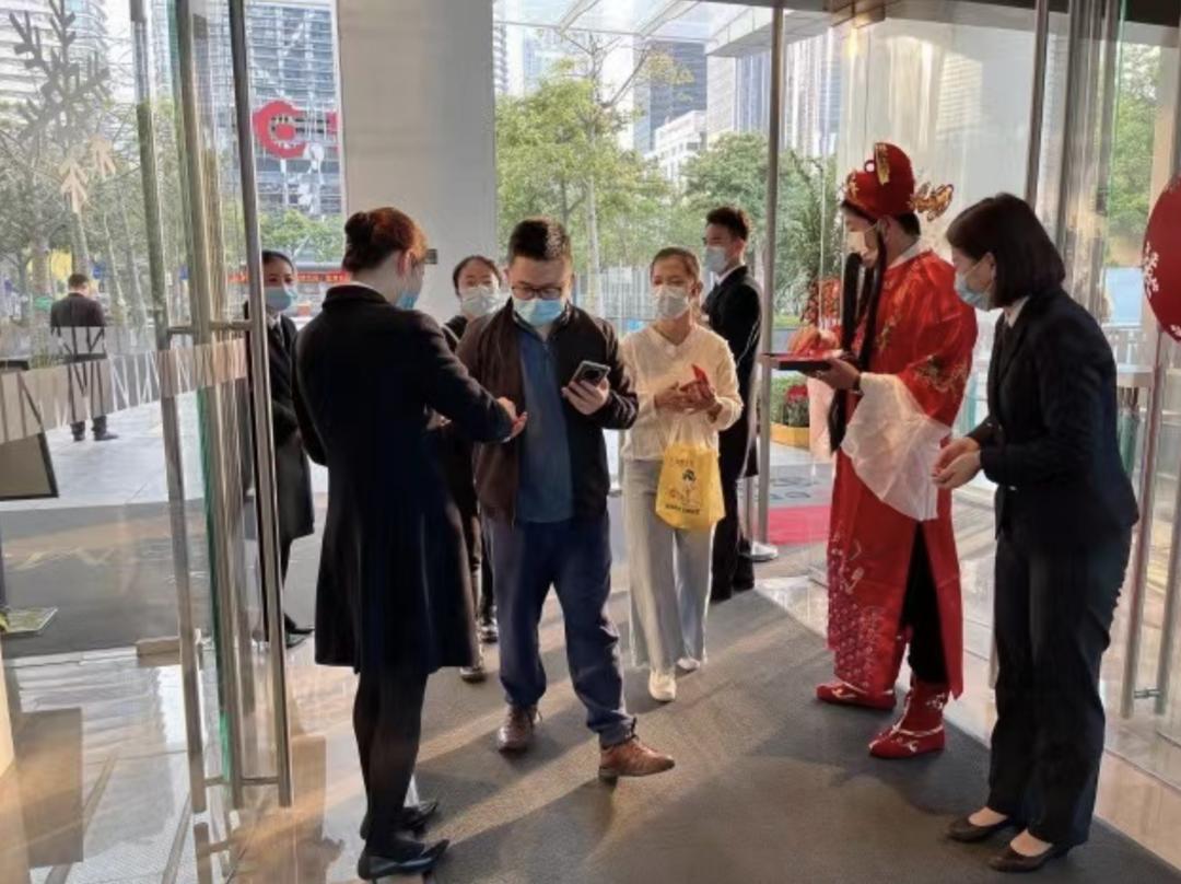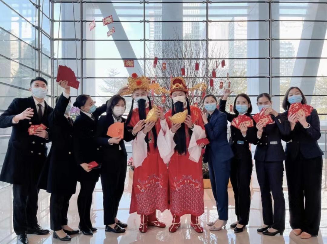 春节有“接财神”的传统习俗,祈祷新的一年能够财源广进、诸事顺利。深圳金地中心在2月7日举办开工主题活动,由物业人员化身“财神爷”派红包、新年糖,为大家送上祝福。