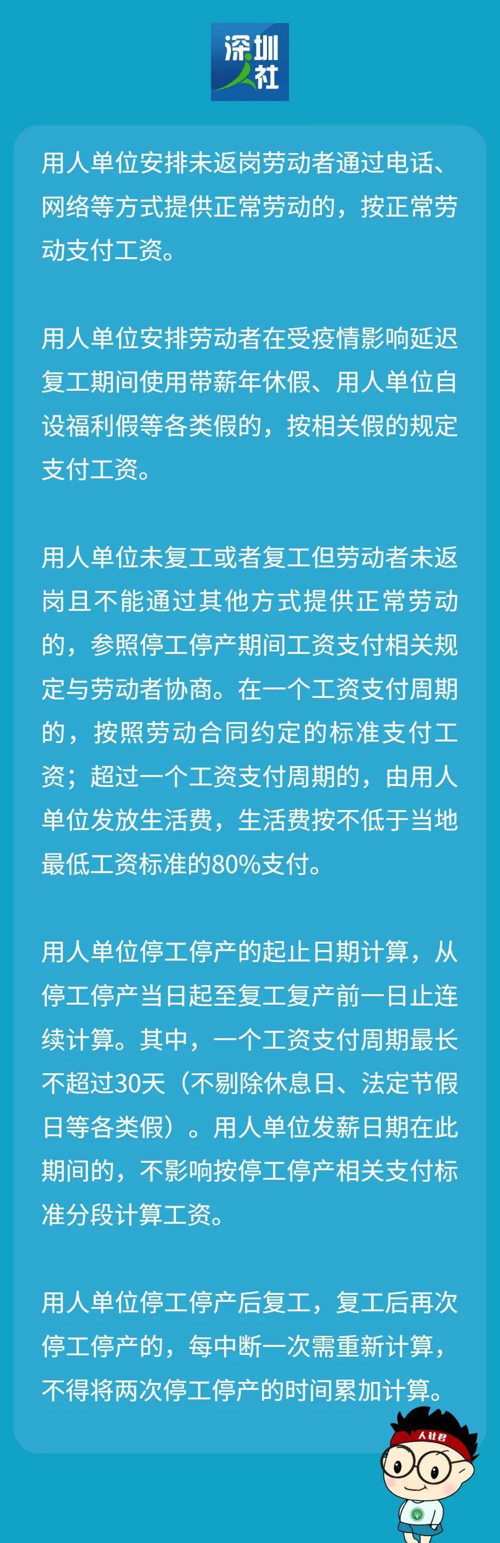 近期,深圳0131疫情牵动人心随着春节长假结束此轮疫情对打工人的影响再度显现中高风险地区员工被劝导暂缓返深返岗石岩街道除涉及国计民生等企业外其他企业提倡线上办公,延迟线下复工消息一出不少朋友跑来问人社君被迫延迟复工,工资怎么算呢?我们节前讲过疫情期间被隔离工资怎么发现在来解决大家新的疑问——因为政府依法采取停工停业、封锁疫区等紧急措施用人单位延迟复工劳动者的工资报酬要怎么处理呢?最后,人社君提醒大家注意做好自我防护根据需要及时进行核酸检测部分内容来源 深圳卫健委内容编辑 深圳人社-End-本文封面