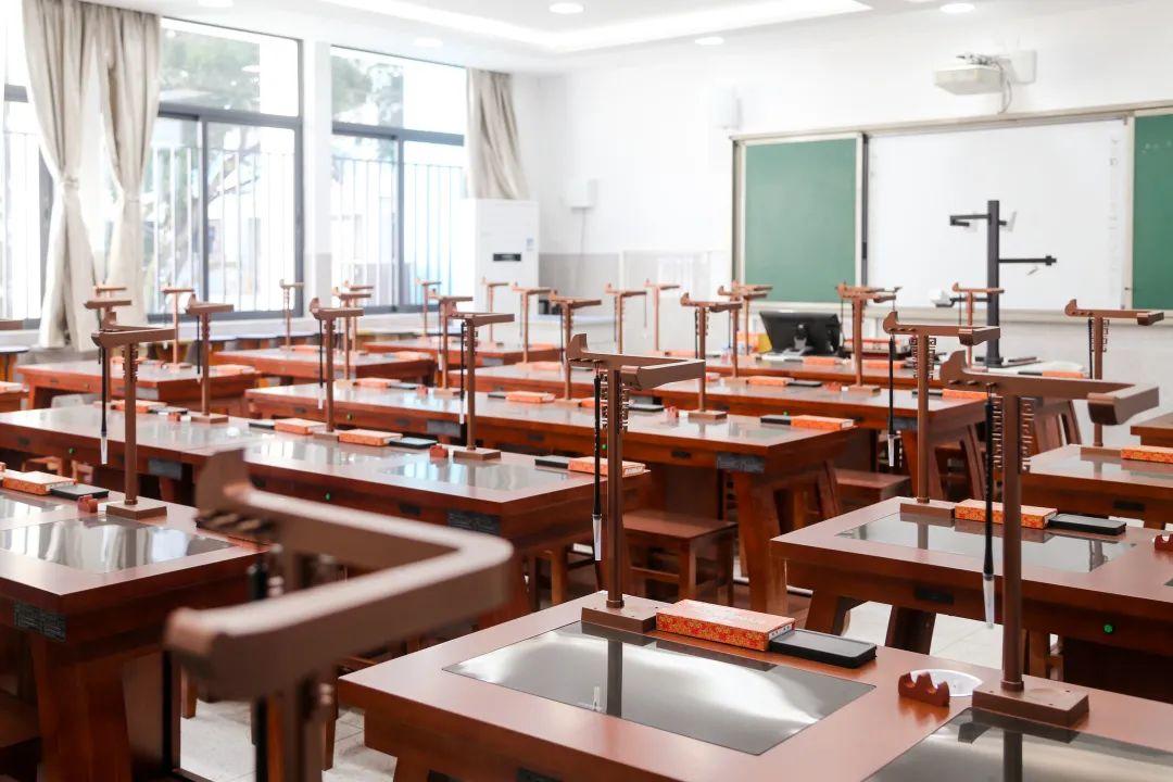 这里同样让人耳目一新。交互式数字临摹台,双目书画教学展示台让课室显得整洁有序。书法教学直播系统、书法教学互动系统等便捷清晰的软件让书法课变得更加有趣易行。