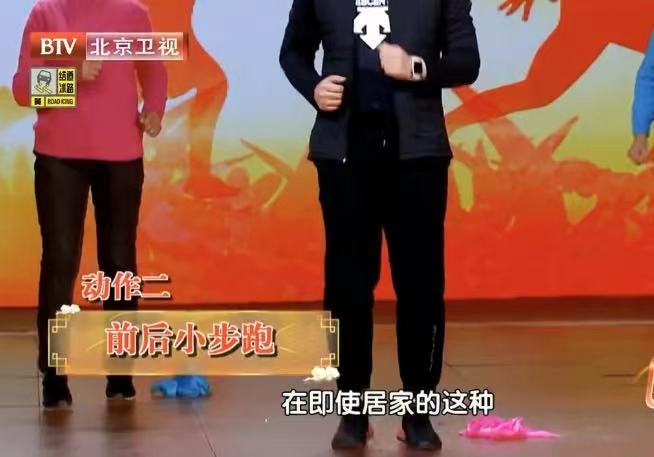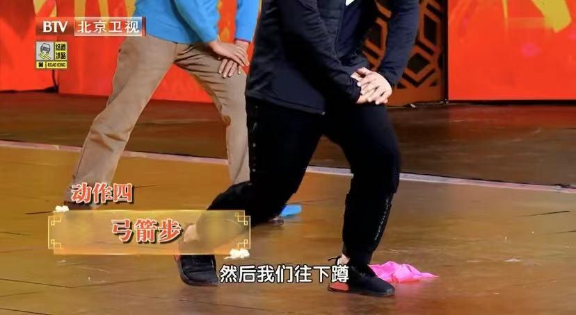 迈出左脚,双手叠放在大腿上,利用自身体重,蹲下去收回来,做20下。提示:如果有膝关节不适的要注意量力而行,不要勉强。
