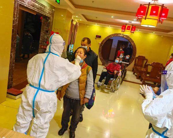 新春佳节,残友们做完核酸检测后,坐在轮椅上玩着室内保龄球、互动套圈等游戏,年长的孤残老人则吃着水果、坚果,笑呵呵在电视前看着央视春晚。