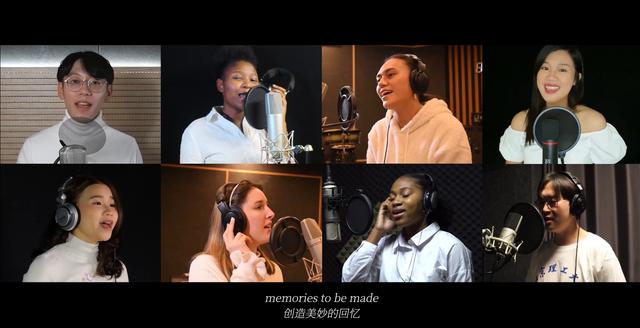 《冰雪之望》由百余名在华留学生共同演唱。他们来自50多个国家,就读于中国24所高校。疫情阻隔,虽然无法线下相见,但大家怀着对音乐的热爱相聚云端,克服时差、网速等困难在线学习歌曲,在冰雪天气中完成拍摄。当看到由70多条音轨和200G的视频制作而成的MV时,大家惊叹于和声的魅力,感动于彼此的付出。