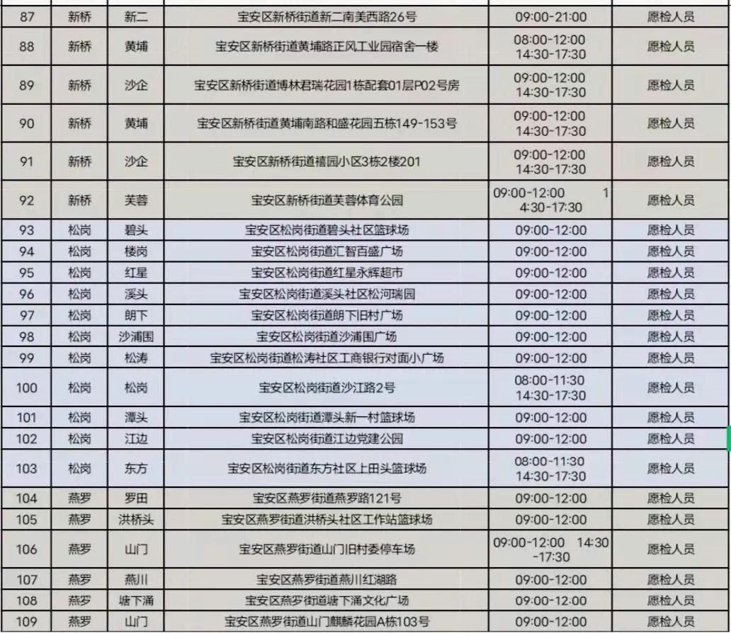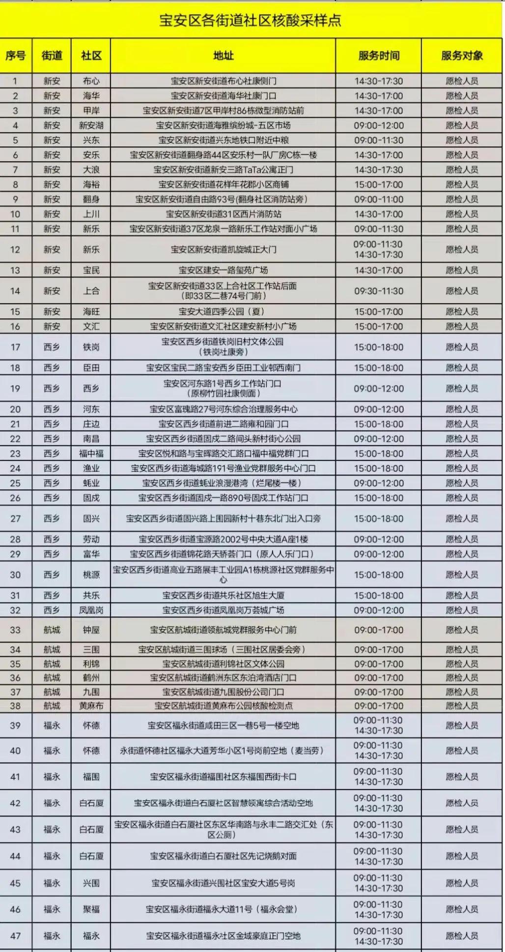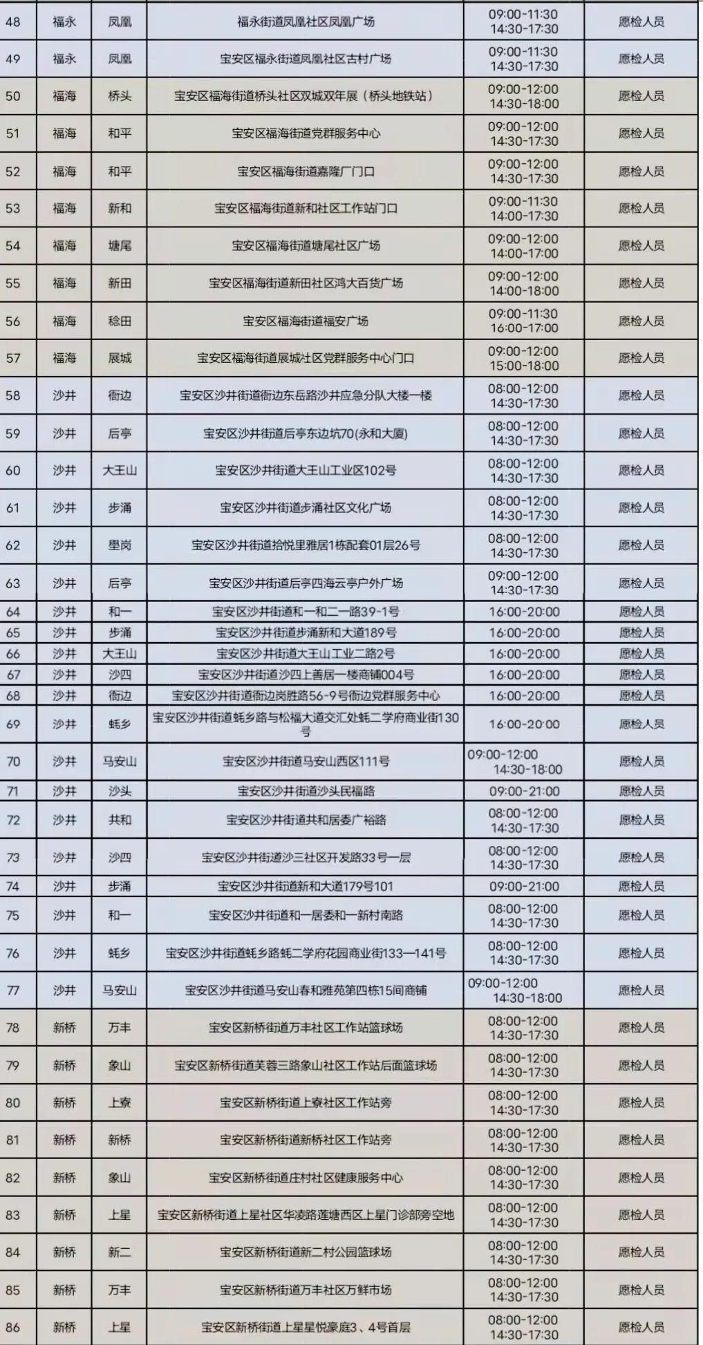 另,石岩街道执行特殊疫情防护政策,核酸点不在此次公布范围。