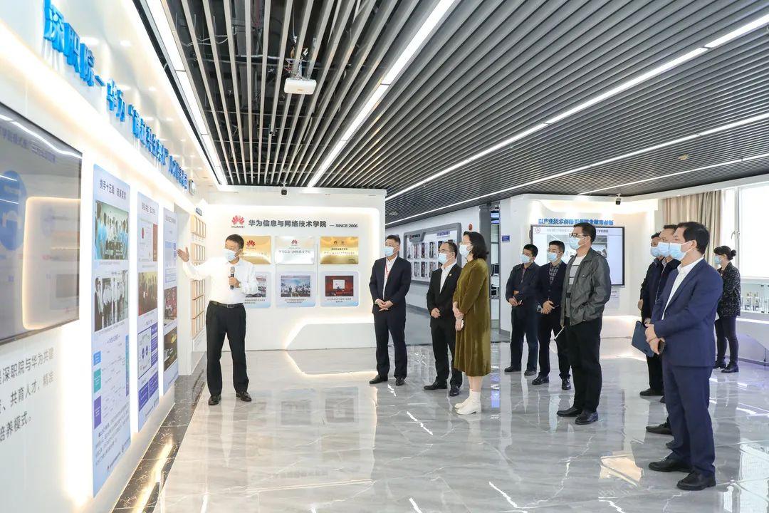 创建于1993年的深职院,是国内最早独立举办高等职业技术教育的院校之一。该校依托珠三角产业发展,秉承深圳特区改革创新精神,坚持把立德树人作为学校教育的根本任务,立足于职业教育产教融合的办学特色,各项事业取得骄人成绩,被誉为中国高职教育的“一面旗帜”。当天,路玉萍一行参观了该院华为信息与网络技术学院、比亚迪应用技术学院、大族激光学院、智能制造技术研究院等特色学院,全面了解该校的办学模式、发展规划、学生就业情况等。
