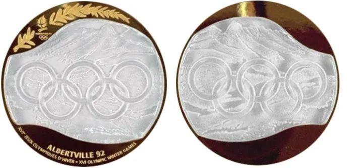 1992年阿尔贝维尔冬奥会的奖牌是经由手工,以水晶为原材料制成,上面镶嵌金、银、铜,制作步骤繁多,一枚奖牌需要35人的流水线。