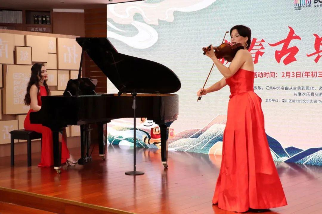 年初三,新春古典音乐会。格鲁吉亚钢琴演奏家MARIAMI与俄罗斯小提琴演奏家TIANA联袂出演,《神秘园之歌》《月亮河》《莫扎特小夜曲》《天鹅湖》《天空之城》等多首中外曲目惊艳舞台,琴声悠扬,引人入胜。
