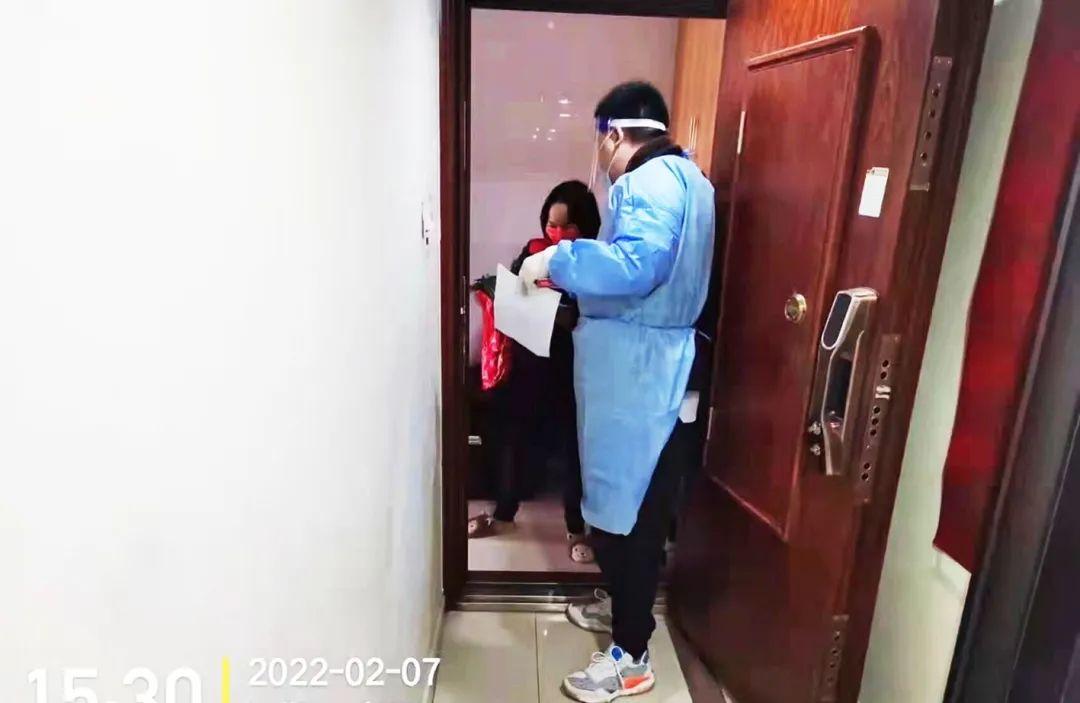 2月7日,春节后开工第一天,南头街道各社区网格员一大早便穿梭在大街小巷中。大新社区网格员杨双上午8时出现在核酸检测采样点做准备工作。虎年春节,他主动放弃休假,一直坚守在一线岗位。