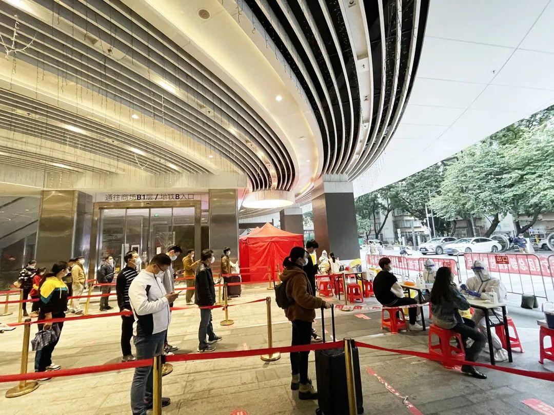 在南头街道辖区的华府国际小区门口的核酸检测采样点,记者看到,工作人员现场分工明确,有的在队伍末端查看粤康码,有的指引居民出示粤核酸码,有的维持现场秩序……从广州返深的何先生告诉记者,从排队到完成采样花了25分钟。