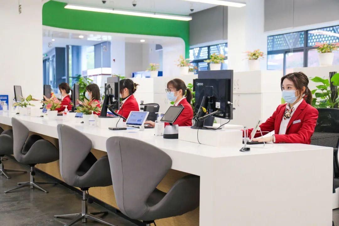 △南山区行政服务大厅女性工作人员穿着喜庆的红色工作服。消息报融媒体记者 雷玲 摄