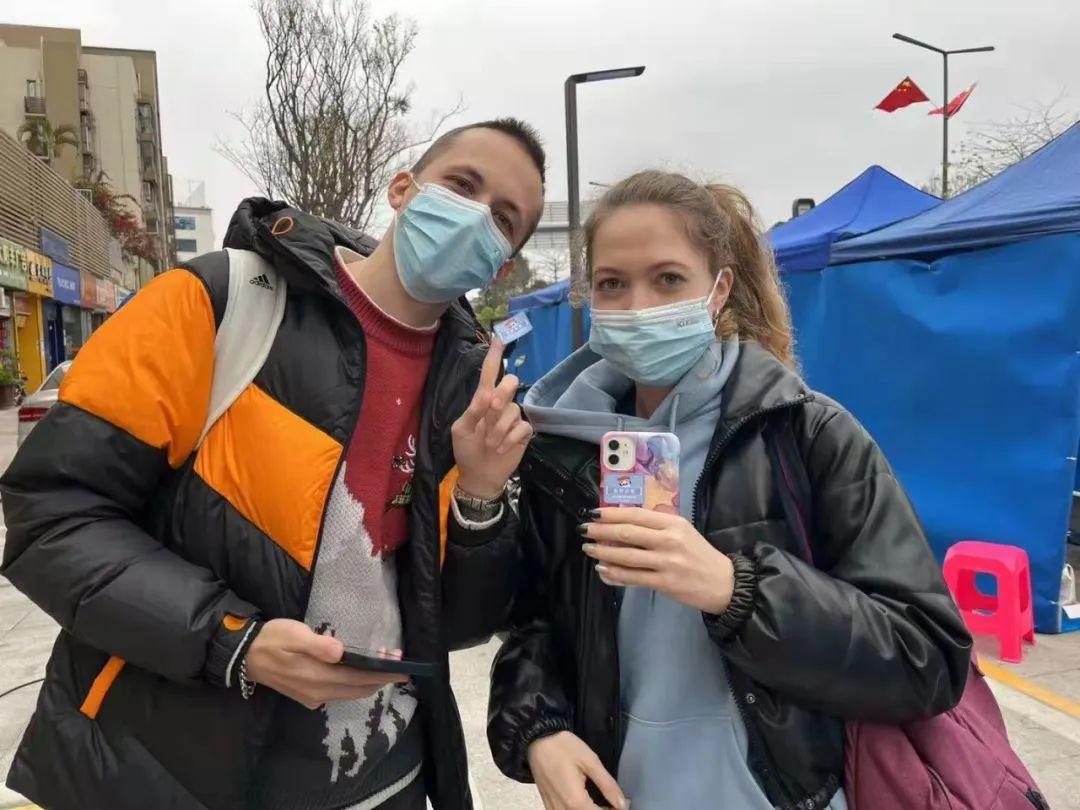不过,在深圳龙岗坂田万科城社区的核酸检测点测完核酸后,每人都能领到一张“冰墩墩”贴纸,这让前来测核酸的居民兴奋不已。