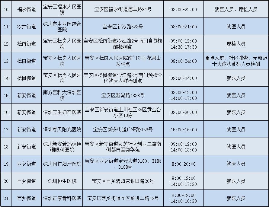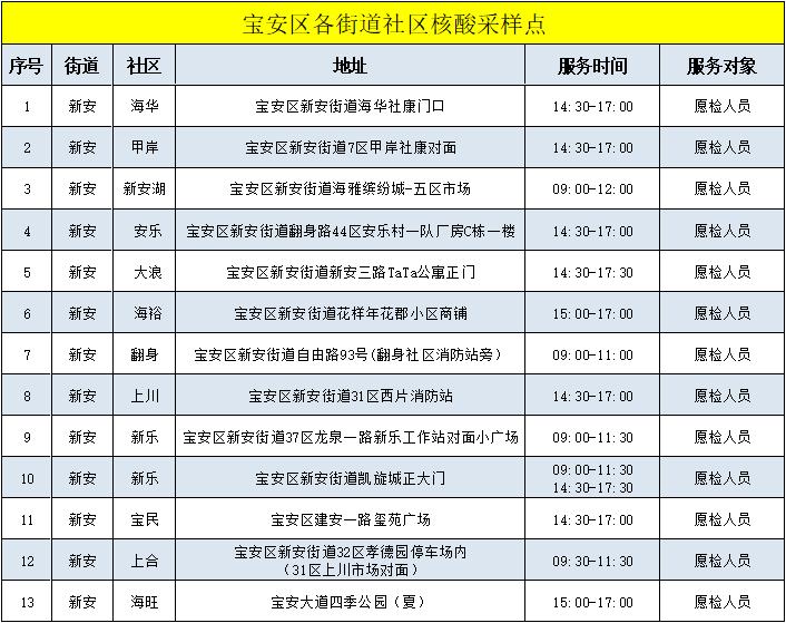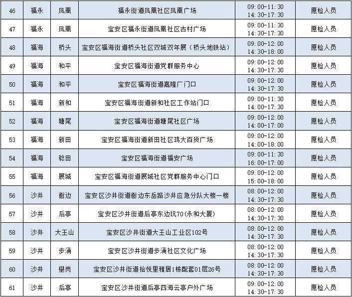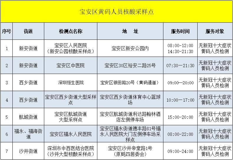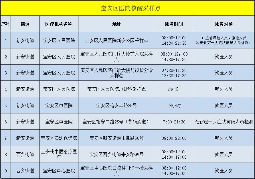 宝安区各街道社区核酸采样点