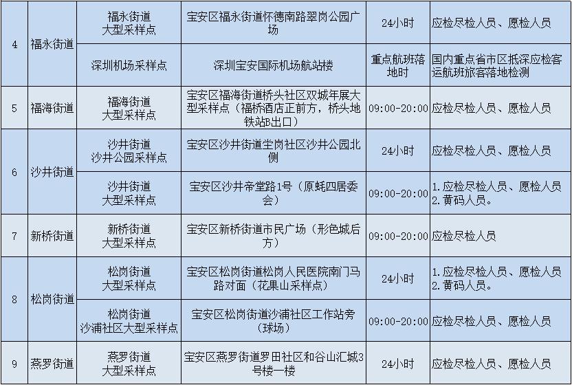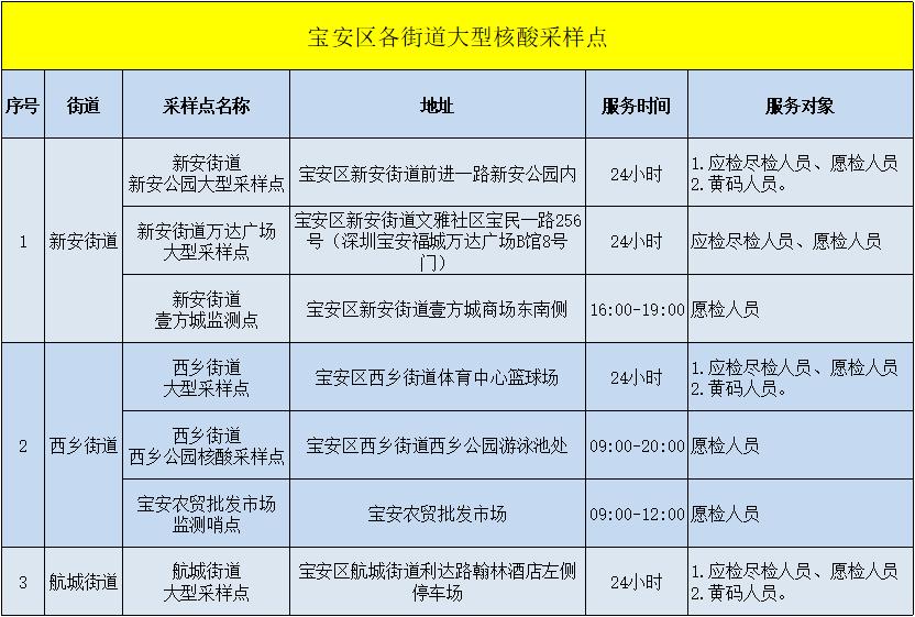 宝安区各街道大型核酸采样点