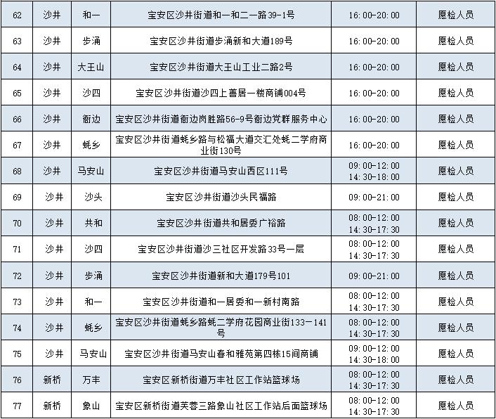 另,石岩街道执行特殊疫情防护政策,核酸点不在此次公布范围。