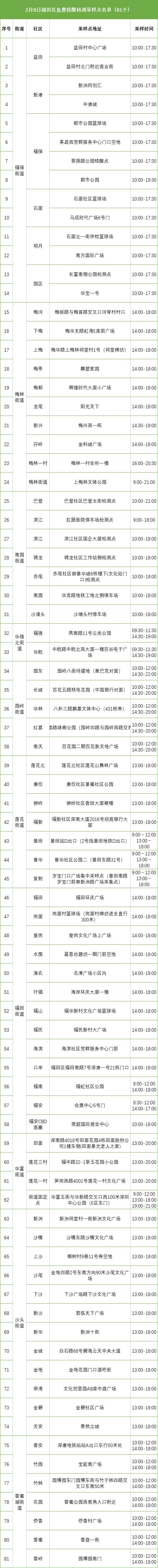 为方便居民进行核酸检测,2月9日,福田区设置82个免费核酸检测采样点,为居民提供服务。