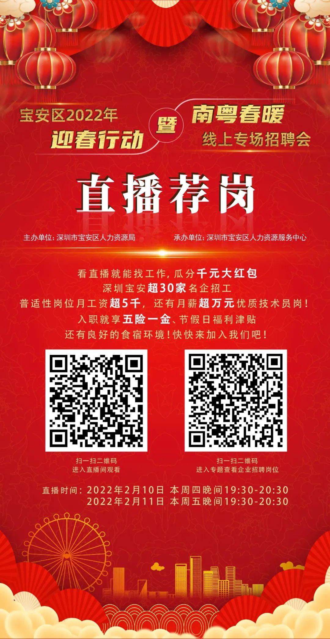 提醒:本则招聘资讯,宝安区人力资源服务中心联合各街道已经对用人单位的资质进行审核,属于正规用人单位。当然,如果在实际应聘中出现与招聘内容不符或者虚假的,请向我们进行反馈。联系电话:0755-29978333;邮箱:bajy@baoan.gov.cn。本公众号的招聘资讯无特殊说明均为公司直招,超过发布时间一个月以上,有可能失效,请留心查阅。