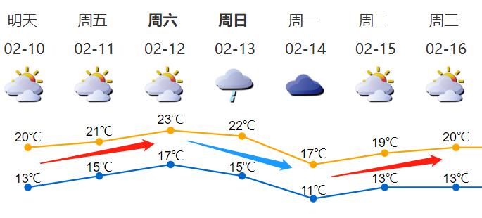 10-12日多云为主,部分时间可见阳光,早晚有轻雾,气温逐日回升,10日气温13-20℃。