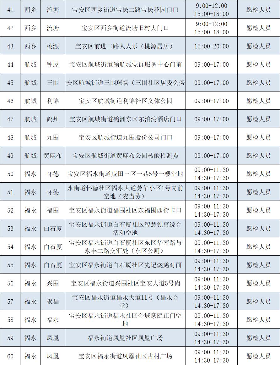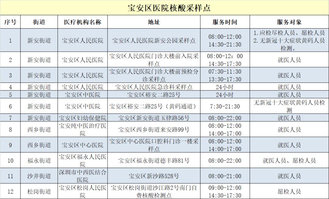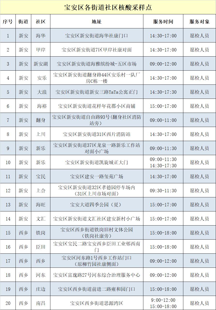宝安区各街道社区核酸采样点