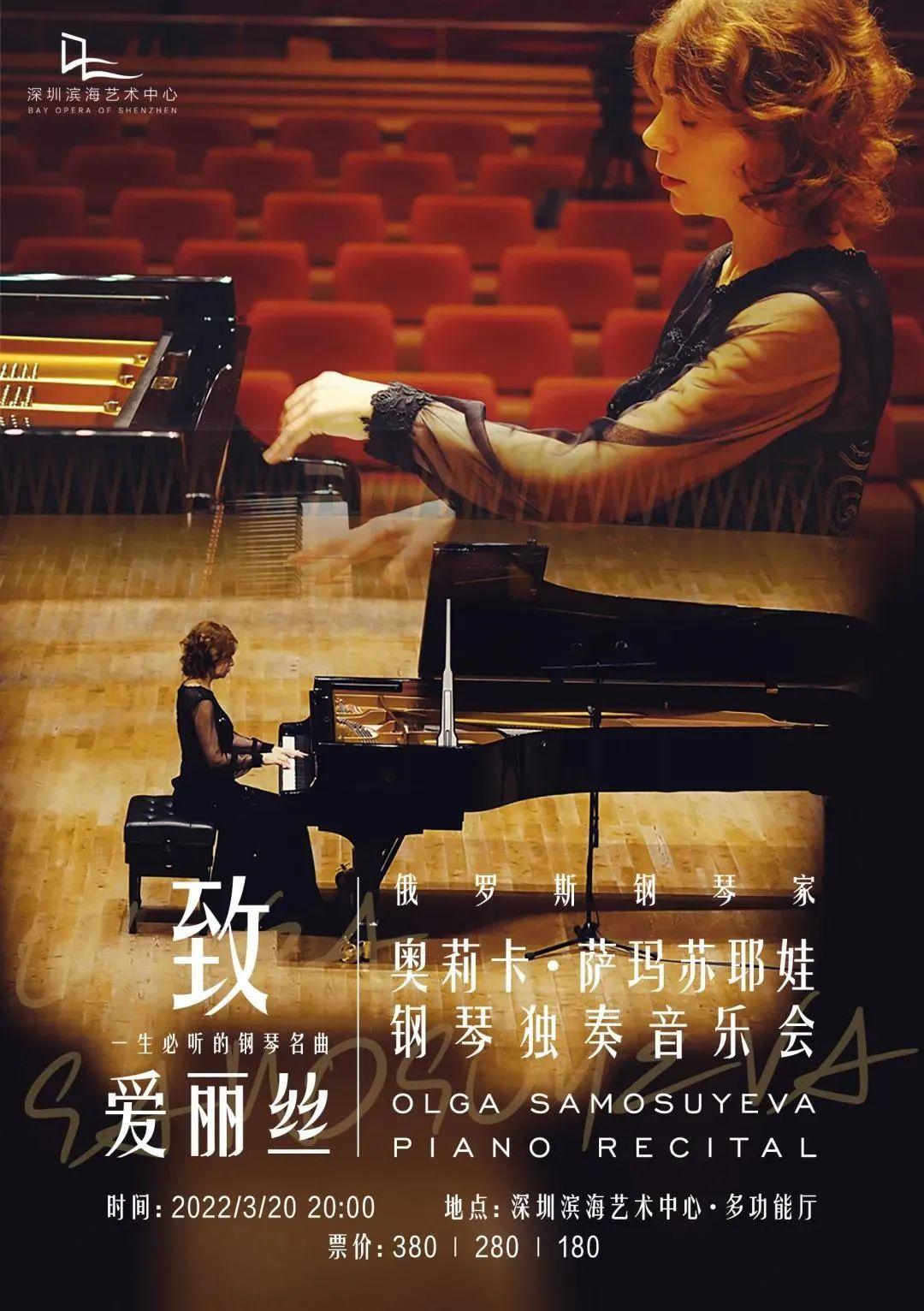 ● 《致爱丽丝·一生必听的钢琴名曲》奥莉卡·萨玛苏耶娃钢琴独奏音乐会,3月20日上演。☞