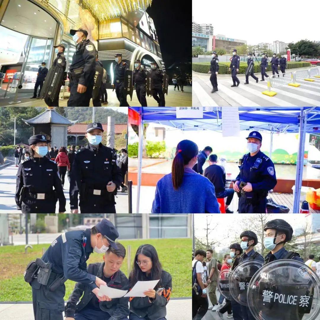 无论是在有浪漫摩天轮的欢乐港湾、能观海赏落日的西湾红树林公园,还是人头看人头的壹方城、大仟里……那一抹抹你熟悉的警察蓝都未缺席。