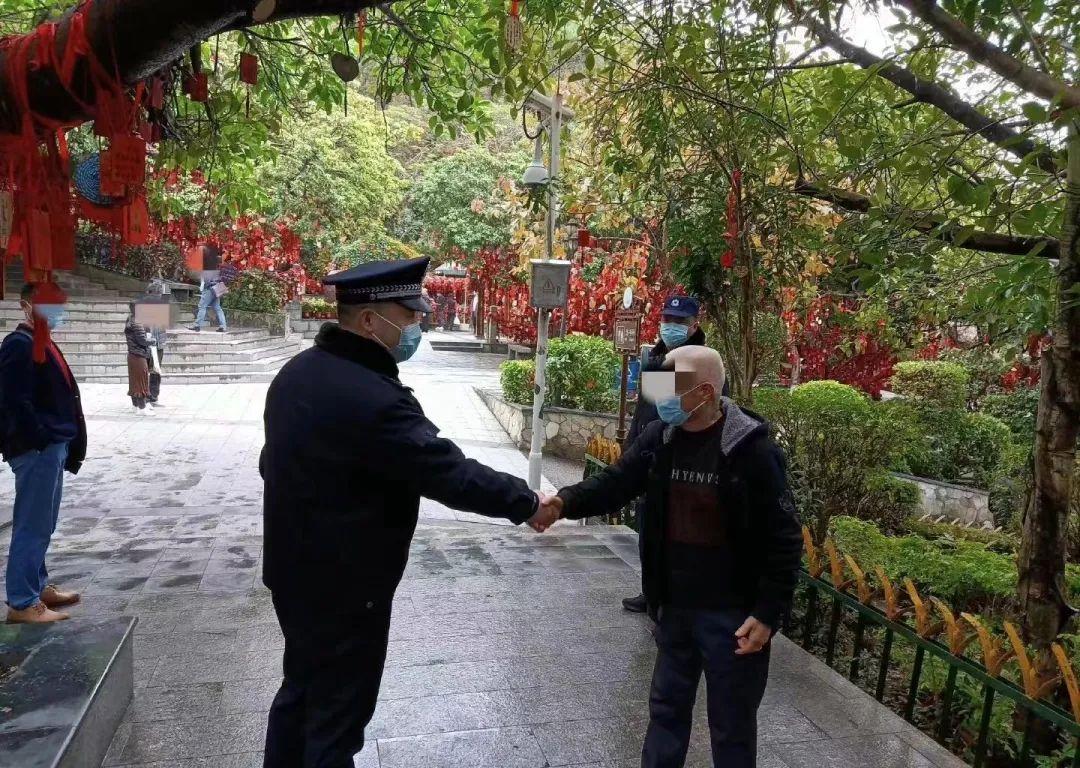 春节期间,大人忙着游山小孩四处欢跑,这也是陈章们精神最紧绷的时候,一遍遍地沿路巡逻,随时做出安全提醒,并及时帮求助群众解难。