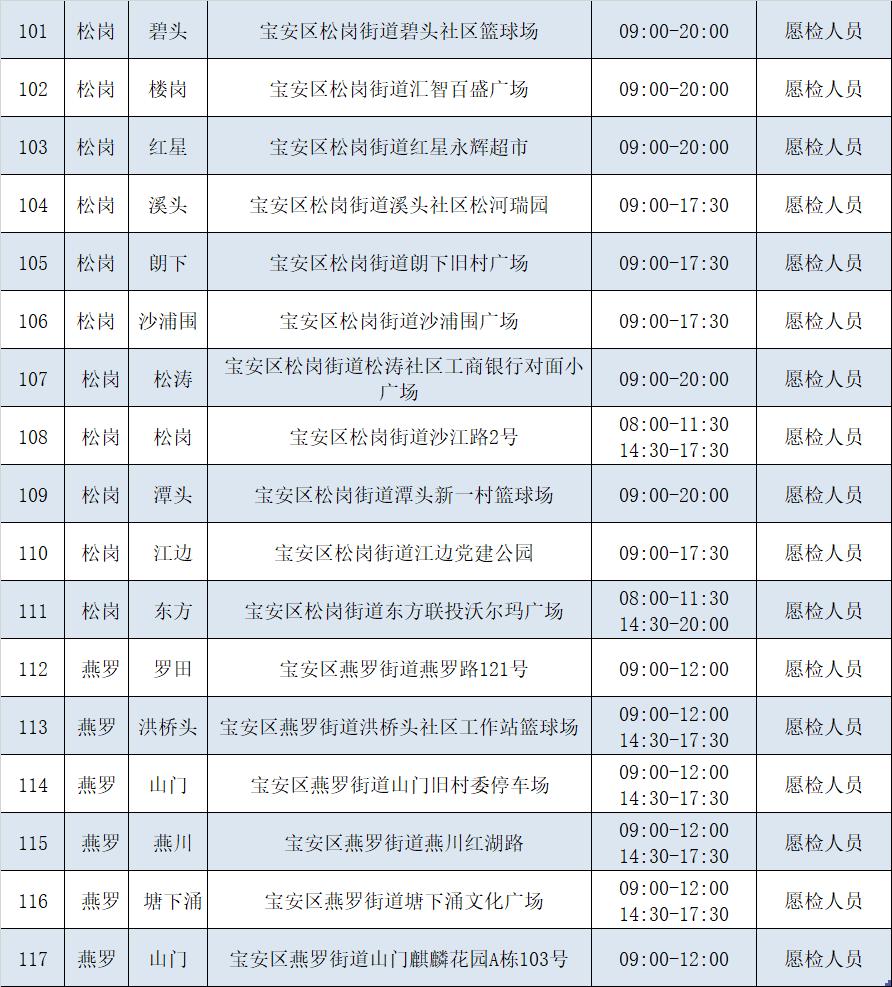 另,石岩街道执行特殊疫情防护政策,核酸点不在此次公布范围。