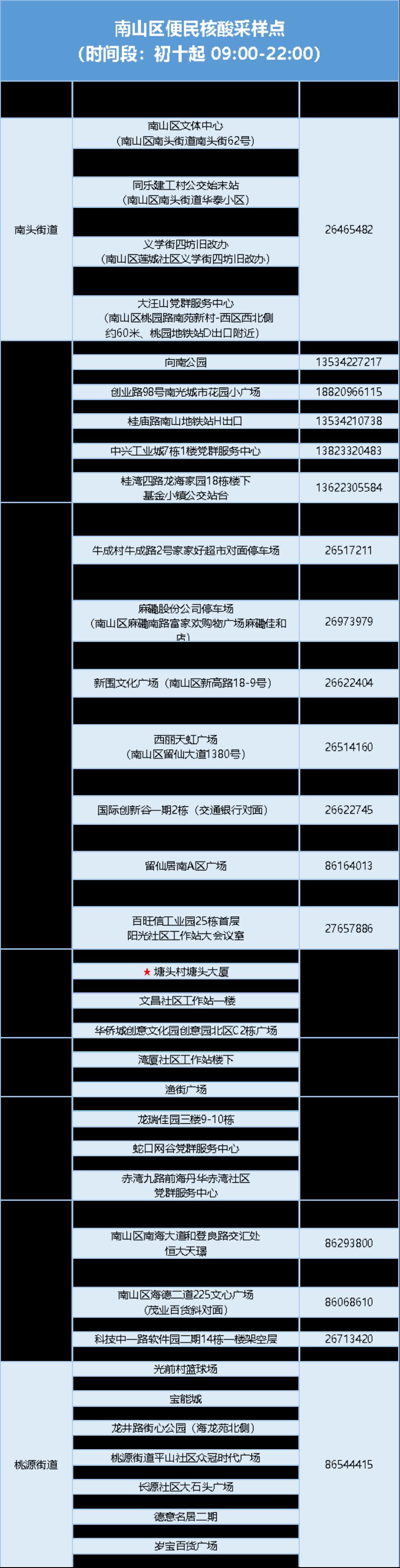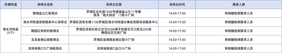 另,石岩街道执行特殊疫情防护政策,核酸点不在此次公布范围。