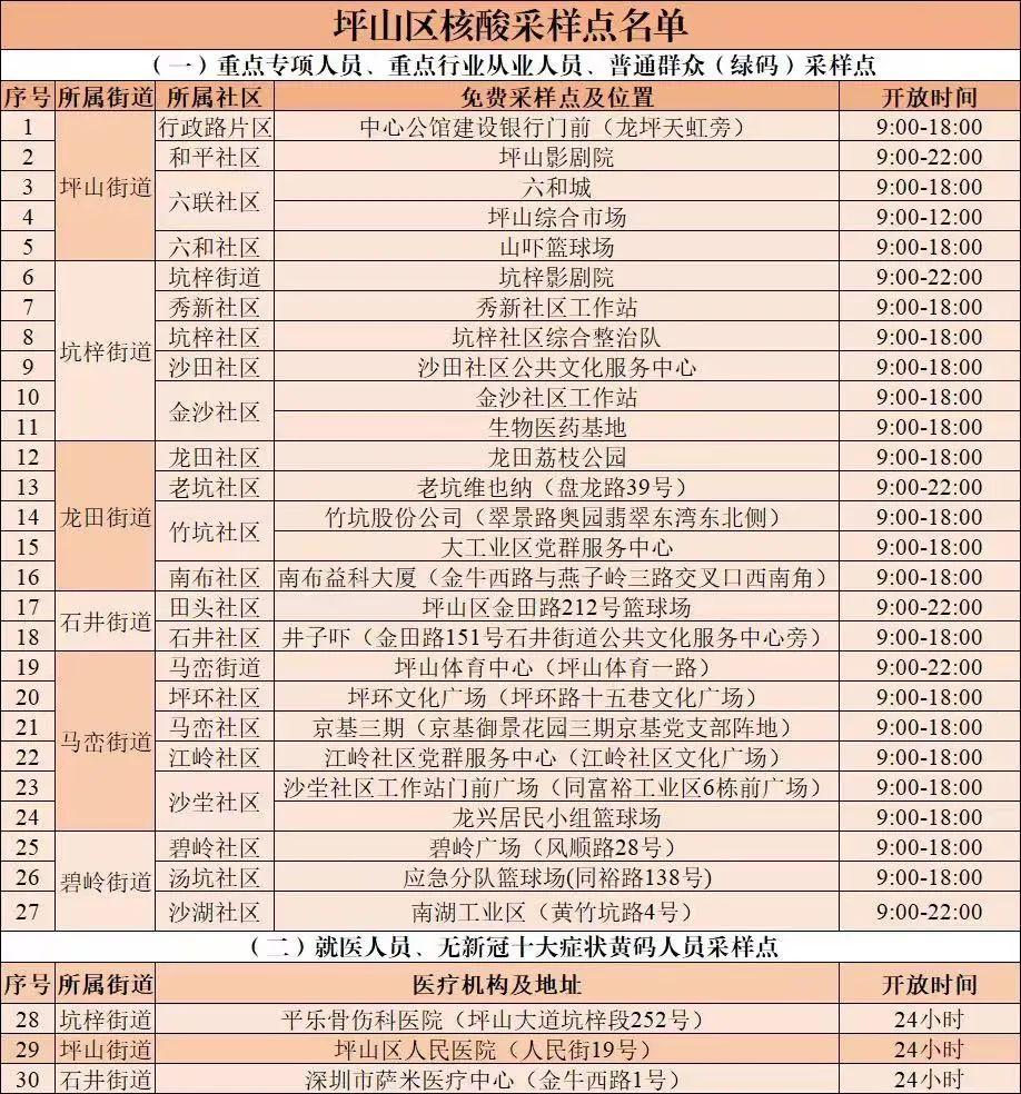 坪山区免费核酸检测点信息