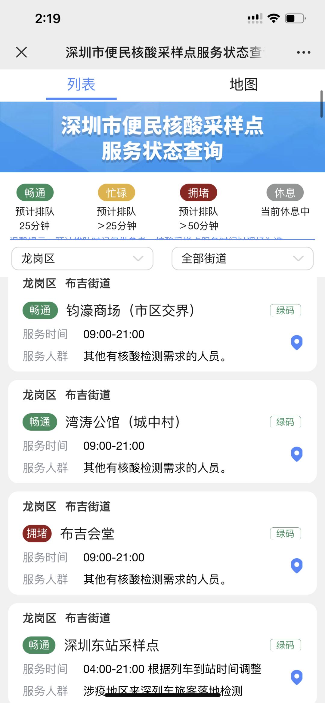 龙岗区免费核酸采样点