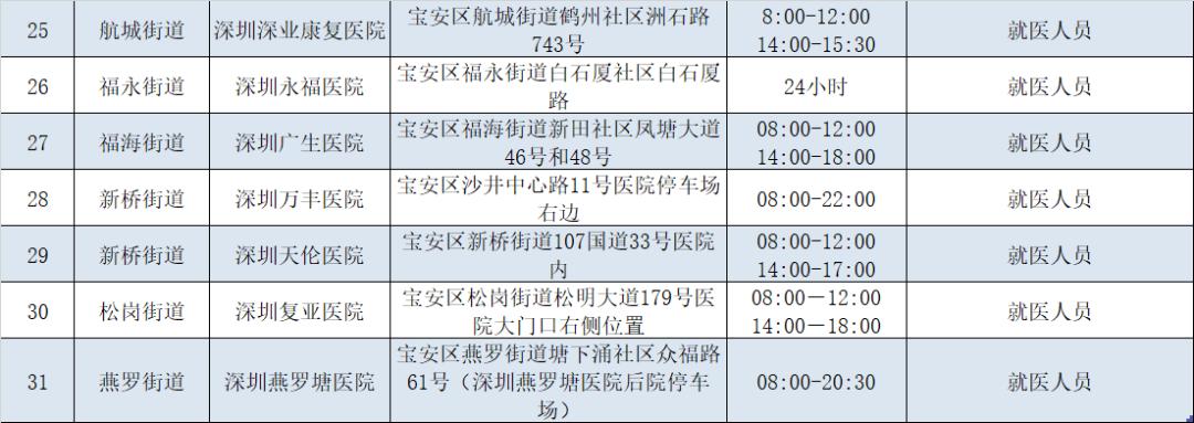 宝安区医院核酸采样点