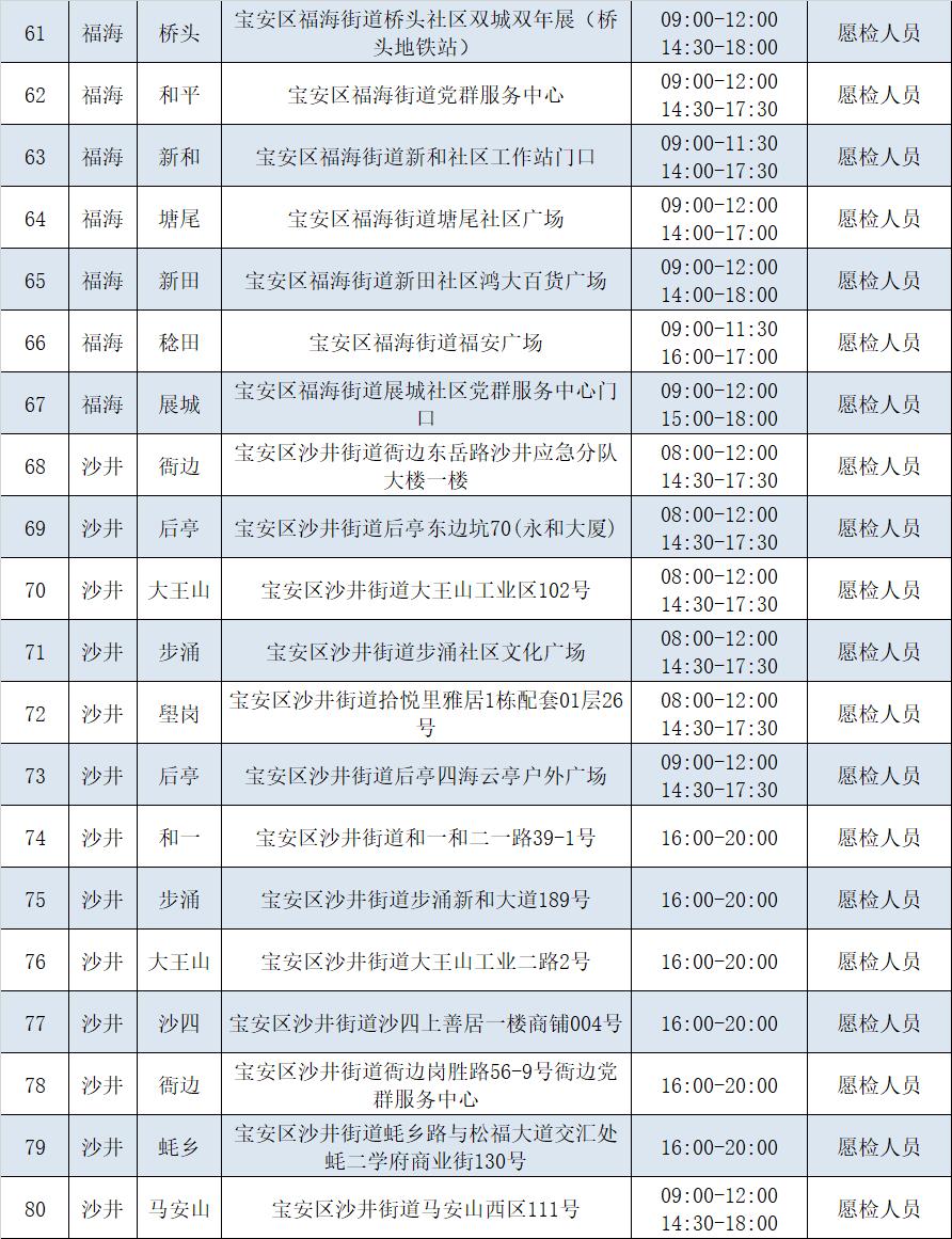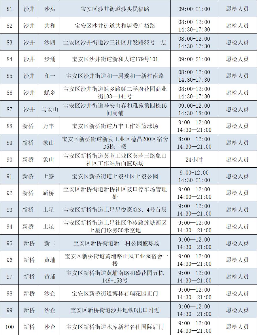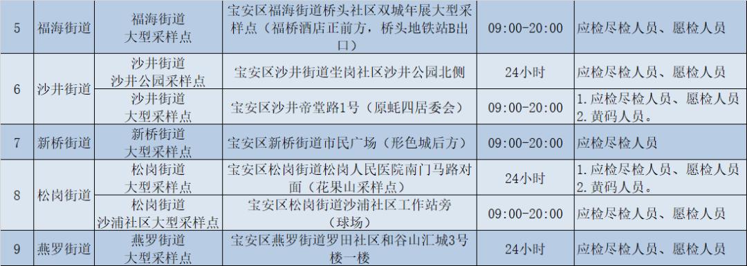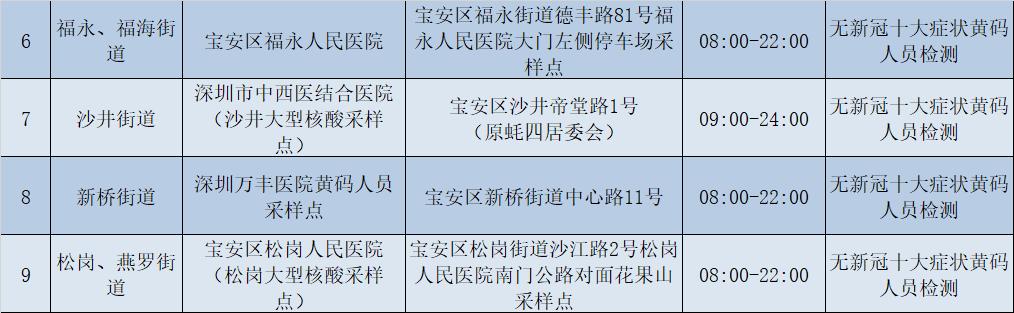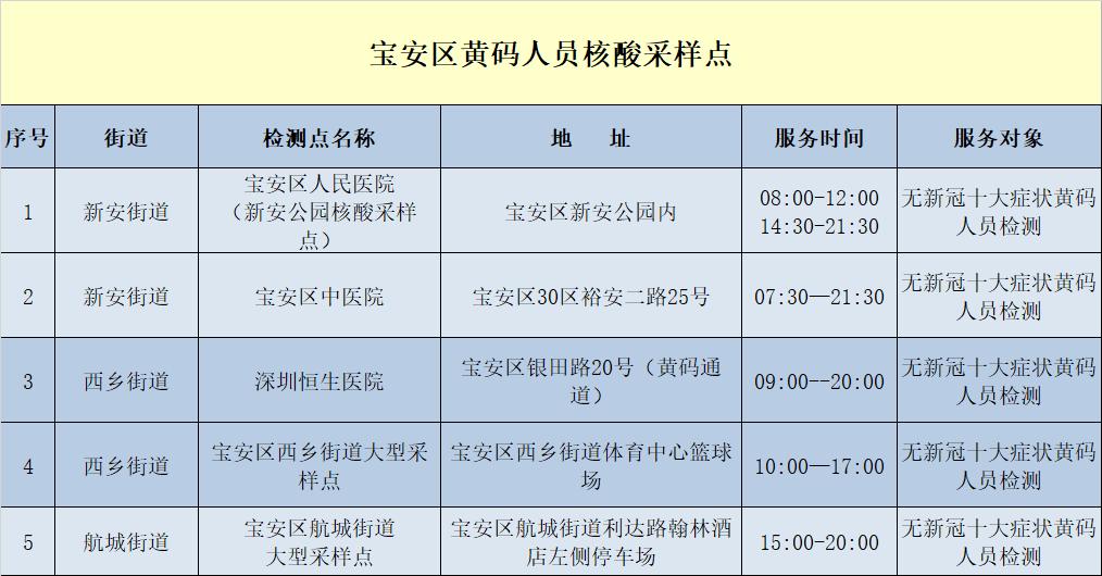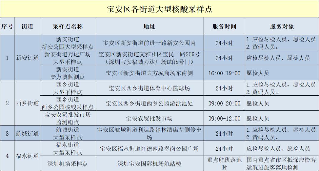 宝安区各街道社区核酸采样点