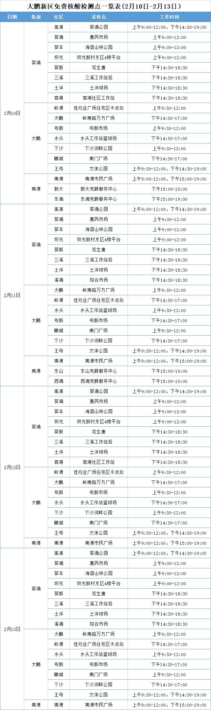 大鹏新区免费核酸检测点信息