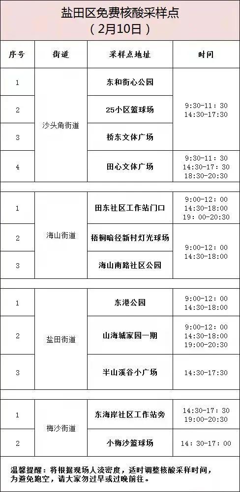 盐田区免费核酸采样点