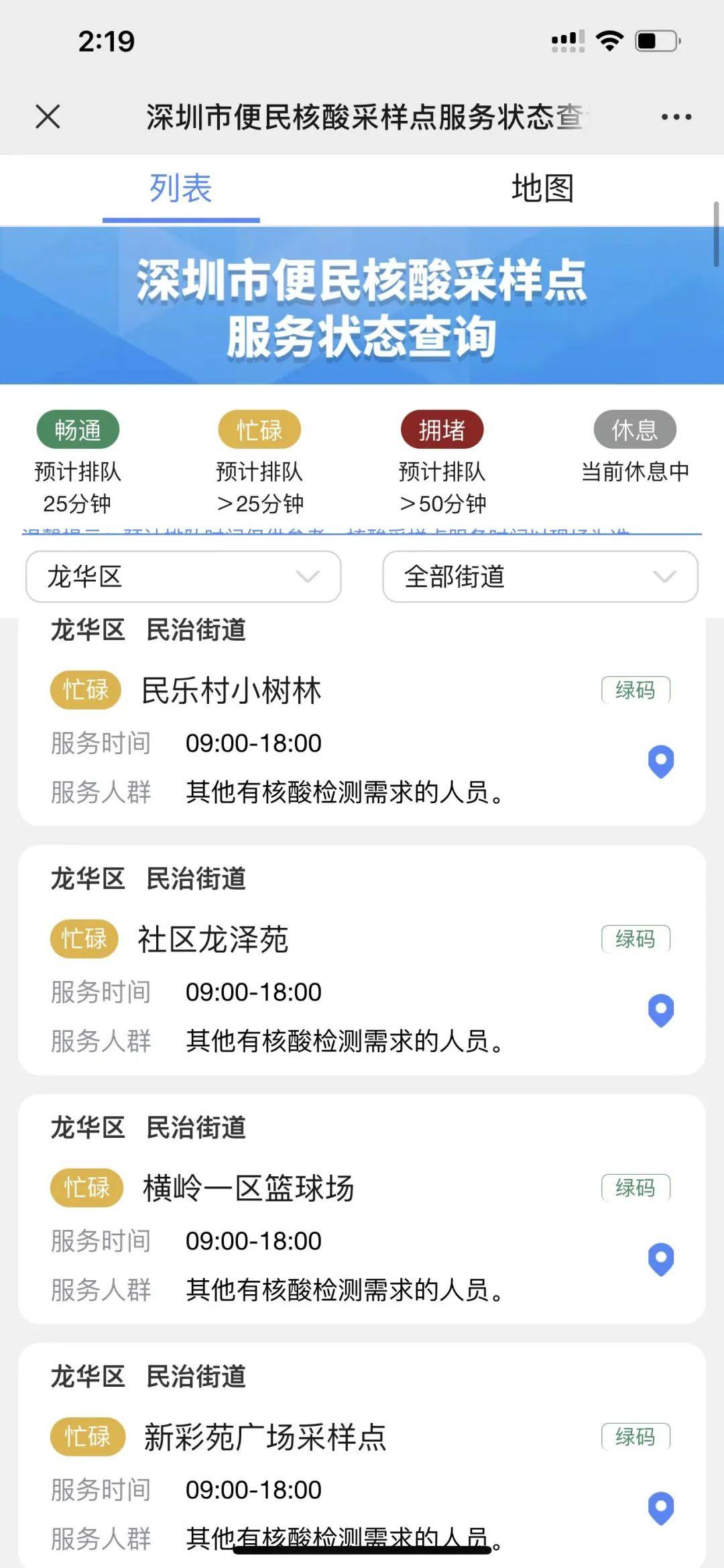 龙华区免费核酸采样点