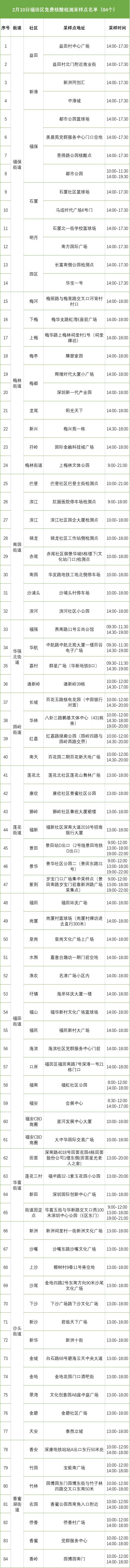 深圳各区设置了多个核酸采样点