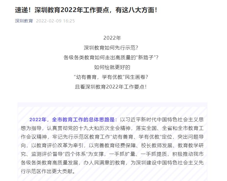 发布深圳教育2022年工作要点