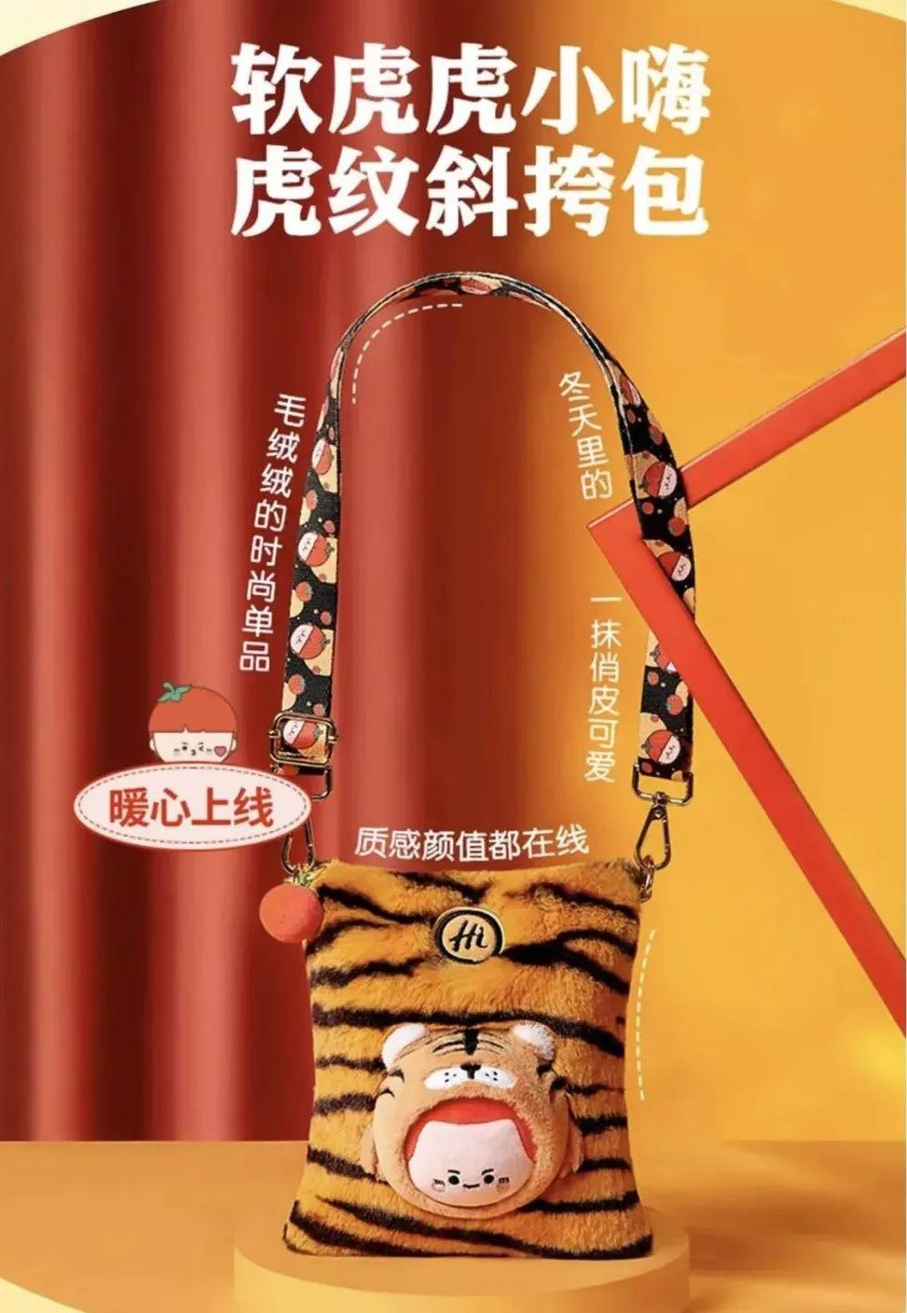海底捞也推出虎年软萌小嗨包两款新年新品,暖虎虎小嗨毛绒挎包、软虎虎小嗨虎纹斜挎包,毛茸茸的老虎外观,立体虎头俏皮可爱,将虎年冬日氛围拉满。