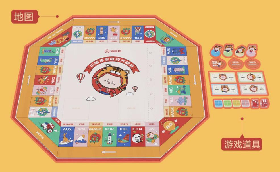海底捞春节定制版大富翁,礼盒包装展开就是大富翁地图,和家人伙伴一起开启虎年大狂欢。