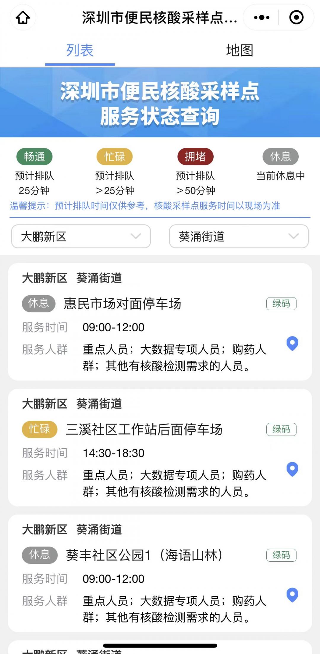 即可查询深圳便民核酸采样点