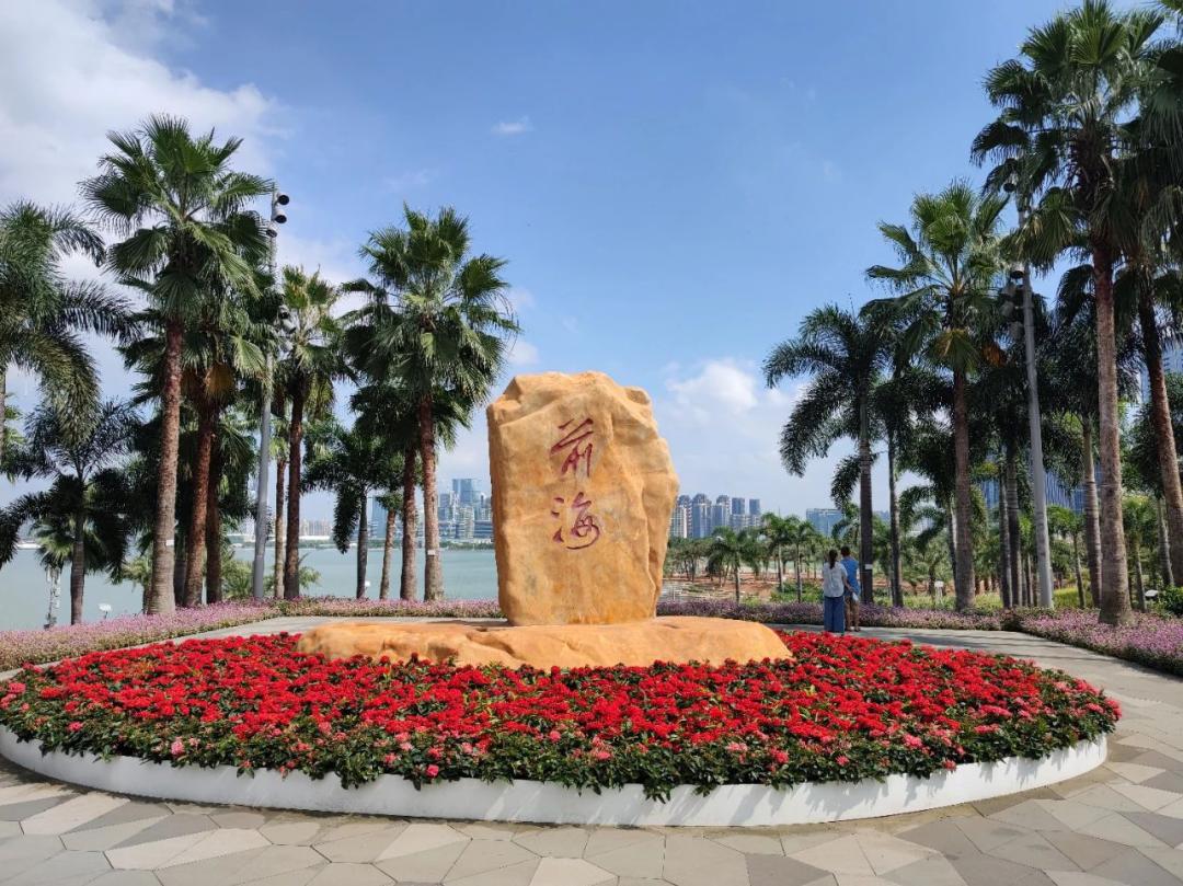 深圳湾畔,天朗气清。前海石公园内,宛如“扬帆启航”造型的巨型黄蜡石矗立在蔚蓝的海边,石上镌刻的“前海”二字遒劲有力,前来合影打卡的游人络绎不绝。